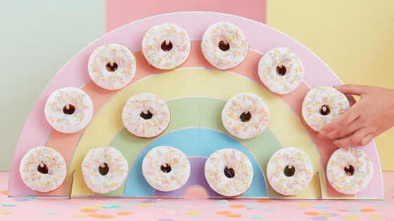 Auch von Ginger Ray kommen diese Saison einige schöne neue bunte Party Accessoires – hier etwas hellere Pastellfarben in Kombination mit Silber. Ein besonderes Highlight ist die Donut Wand in Pastell. Hübsch anzusehen und ein echter Hingucker auf deiner Geburtstagsparty, dem Regenbogen oder Einhorn Kindergeburtstag oder sogar der Candy Bar auf einer Same Sex Wedding. Die Donuts sehen nicht nur zum Anbeißen aus – sie sind auch eine Geburtstagskuchen Alternative und eine schöne Ergänzung auf dem Sweet Table, die ohne viel Aufwand einen tollen Effekt erzielen.